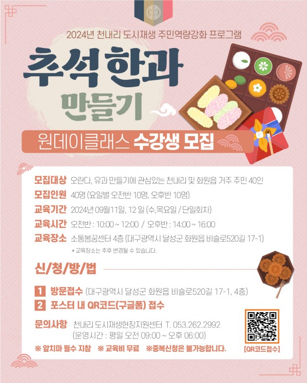 24년 추석 한과 만들기 원데이클래스 추가 개설반 신청자 모집