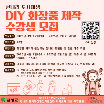 - 화장품에 관심있는 천내리·화원읍 거주 주민