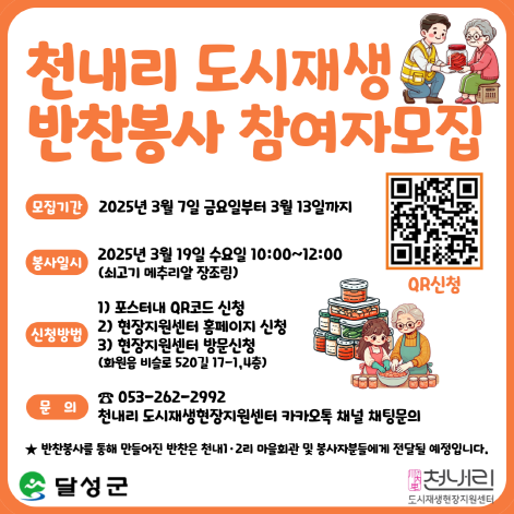 2025년 천내리 도시재생 반찬봉사 참여자 모집