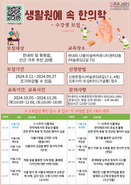 모집대상 : 생활원예와 관련 한의학 지식에 관심있는 천내리, 화원읍 및 인근 거주 주민
