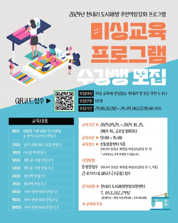 - 미싱 교육에 관심있는 천내리 및 인근 주민 누구나