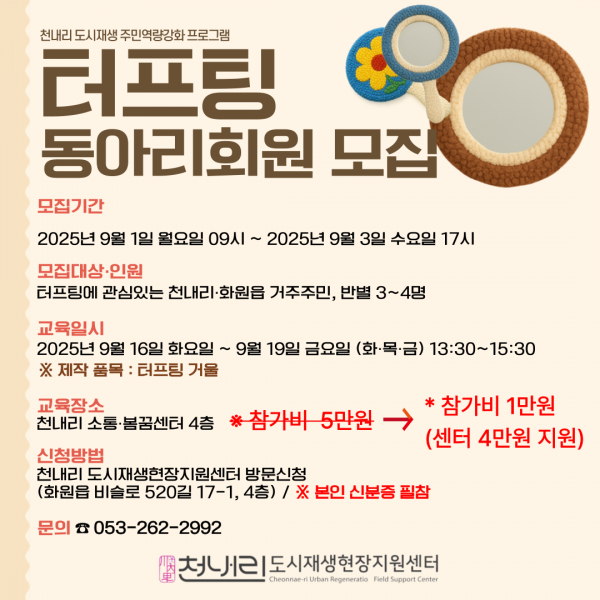 천내리 도시재생 터프팅 동아리회원 모집(현장접수)